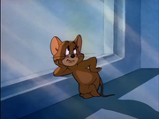 * Jerry, minuscolo topo d'appartamento, si e costruito una tana in miniatura nelle intercapedini dei muri. Al suo interno riproduce in tutti i particolari le comodita della casa umana (letto, divano, cassettiere, quadri, soprammobili ). Sembra innocuo cosi piccino e rotondetto, possiede pero buona velocita e solido carattere. Spesso riesce a procurarsi il cibo a danno di Tom che deve difenderlo.